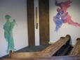 This metal fits the pipes that installed above the rostrum perfectly. The colours of the environment are reflected in these metals in a beautiful way. The rough welding contributes to the contact and the unity of the piece of art with its surroundings.